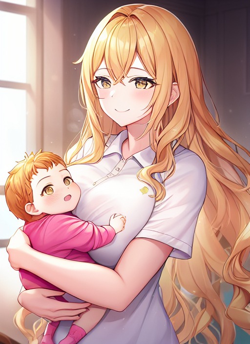 産まれて間もないころのみらいを抱きかかえるイメージ画像。