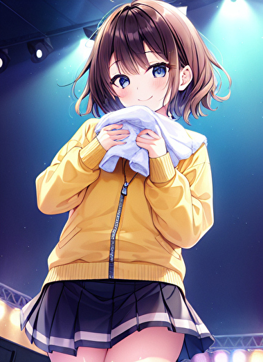 休憩中のちぐさに、タオルを渡そうとしているところ。